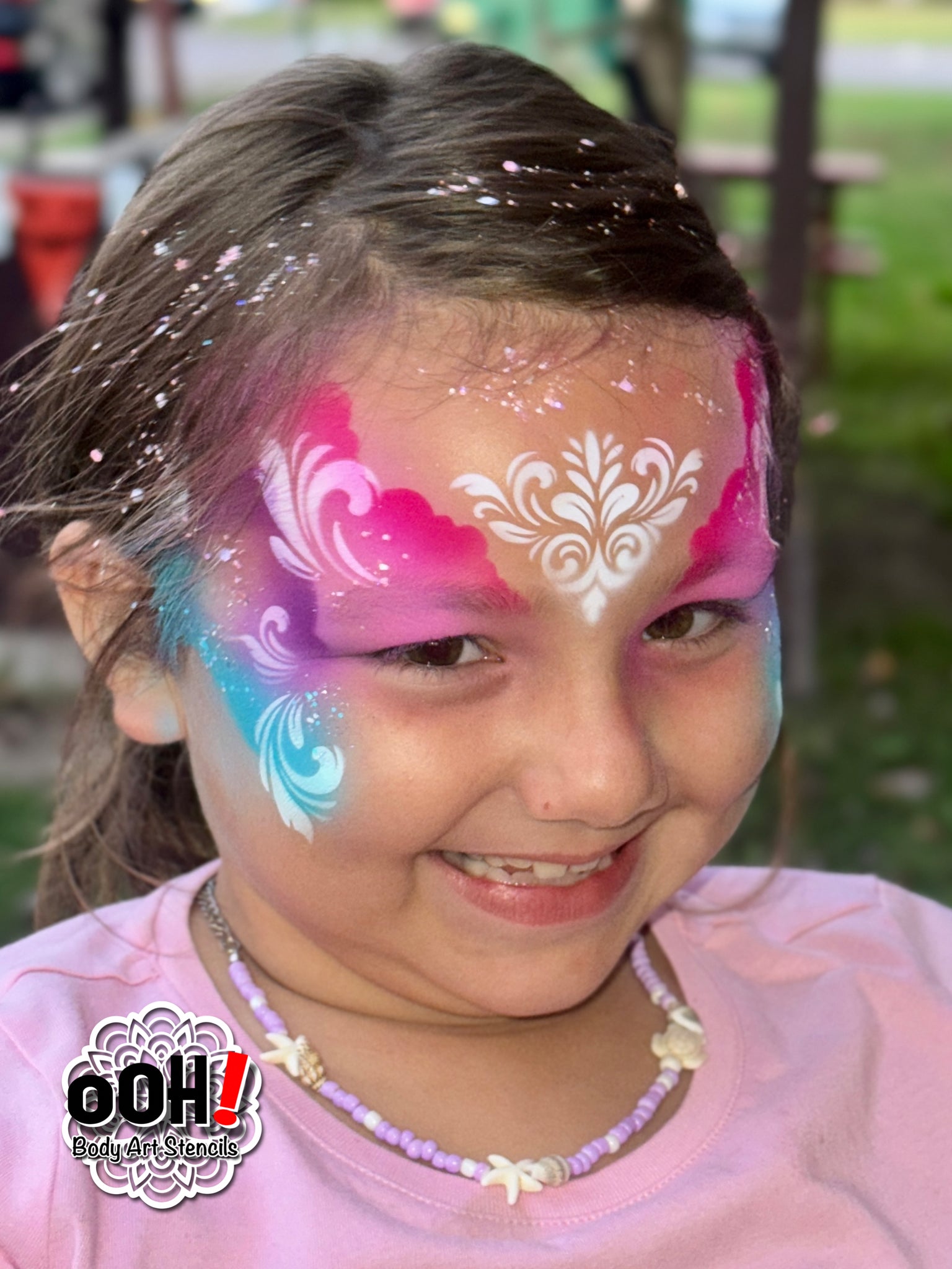 Clayton used his own brush strokes to create this wonderful flourish tear drop stencil. The markings fit most faces, and also work fantastic with tattoo designs to add that extra bit of elegance.
